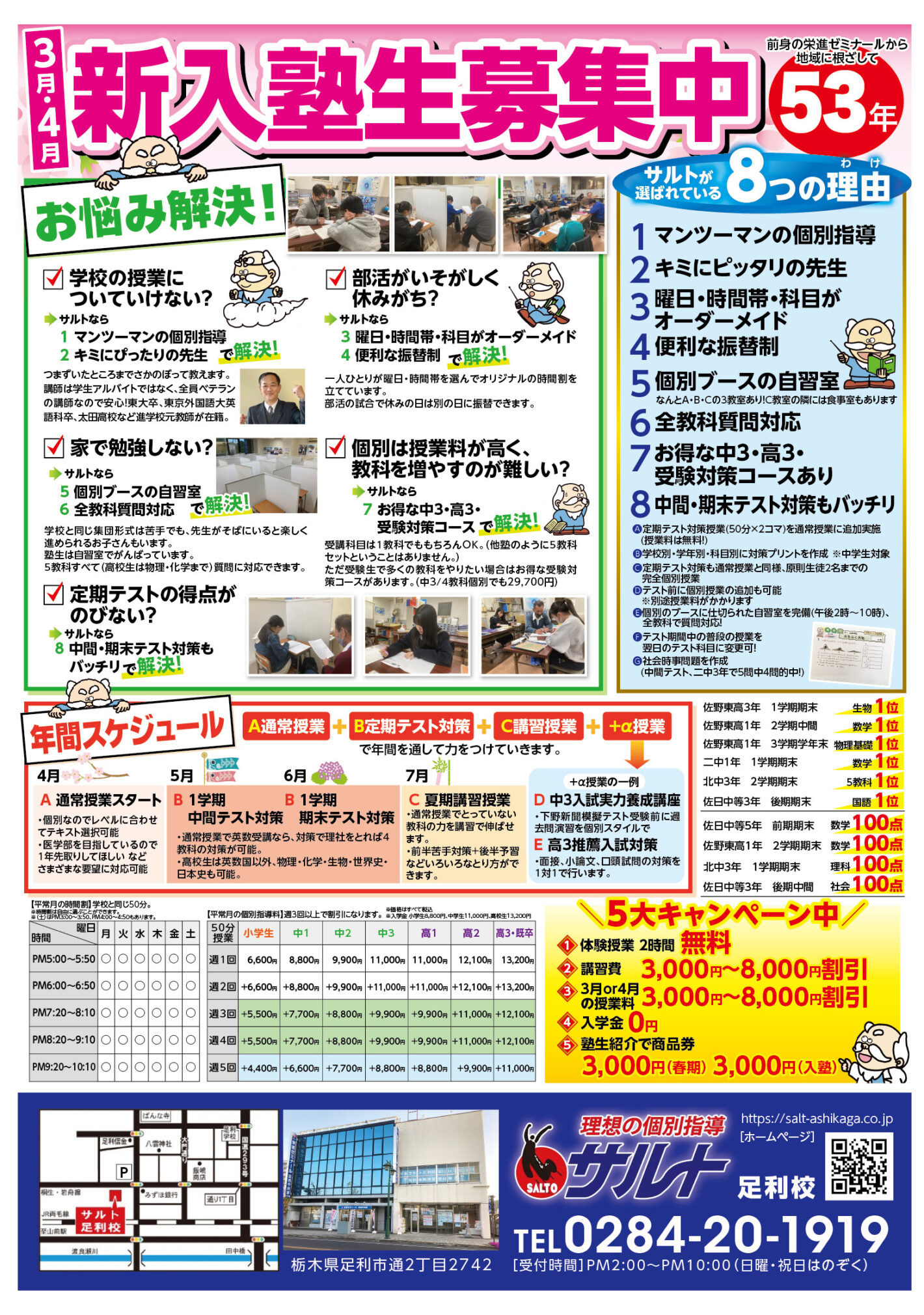 そのほか、春期個別講習の詳細は、問い合わせにてご確認ください。