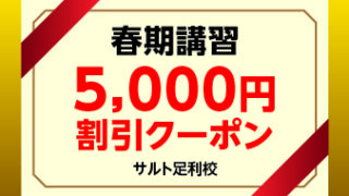 新着情報 3月or4月授業料5,000円割引クーポン(塾外生) 3月or4月授業料5,000円割引クーポン(塾外生)5,000円割引クーポンはこちらから入手できます。受付時に、スマート... 2026.02.27 新着情報